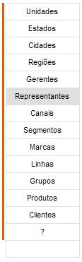 | Analisa o ranking de qualquer elemento que você selecionar no rodapé. Você pode por exemplo querer conhecer o ranking de seus produtos no estado de MG, cidade de Betim, de um determinado representante. Defina na coluna da esquerda onde deseja analisar o ranking e no rodapé os elementos que serão rankiados. | | | | Inativos