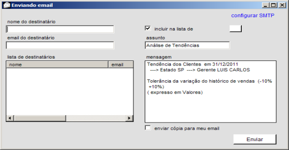 | Você pode enviar um e-mail das análises geradas, exportá-las para excel ou imprimi-las. |
